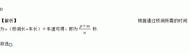一列火车长m米,以每秒n米的速度通过一个长为p米的桥洞,用代数式表示它通过桥洞所需的时间为( )