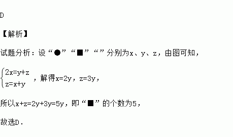 用“●”“■”“”分别表示三种不同的物体,如图所示,前两架天平保持平衡,若要使第三架天平也平衡,那么“?”处应放“■”的个数为( )
