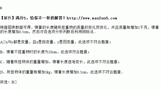 ¸ù¾Ý¿ÆÑ§Ñо¿±íÃ÷£¬ÔÚµ¯»ÉµÄ³ÐÊÜ·¶Î§ÄÚ£¬µ¯»É¹ÒÉÏÎïÌåºó»áÉ쳤£¬²âµÃÒ»µ¯»ÉµÄ³¤¶Èy£¨cm£©ÓëËù¹ÒµÄÎïÌåµÄÖØÁ¿x£¨kg£©¼äÓÐϱíµÄ¹ØÏµ£ºÏÂÁÐ˵·¨²»ÕýÈ·µÄÊÇ£¨¡¡¡¡£©