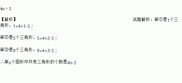 如图,①是一个三角形,分别连接这个三角形三边中点得到图②,再连接图②中间小三角形三边的中点得到图③,按这样的方法进行下去,第n个图形中共有三角形的个数为__.