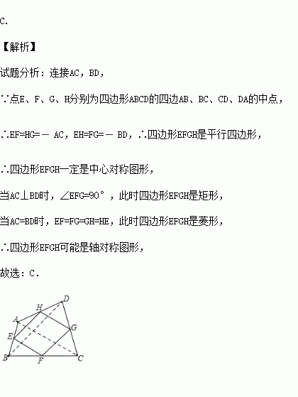 如图,点E、F、G、H分别为四边形ABCD的四边AB、BC、CD、DA的中点,则关于四边形EFGH,下列说法正确的为( )