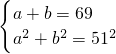 分析:设两直角边为a、b,根据勾股定理及两条直角边的和为69,可得出方程,解出即可.