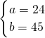 一个直角三角形中,斜边长为51,且两条直角边的和为69,则两条直角边的长度分别为________.