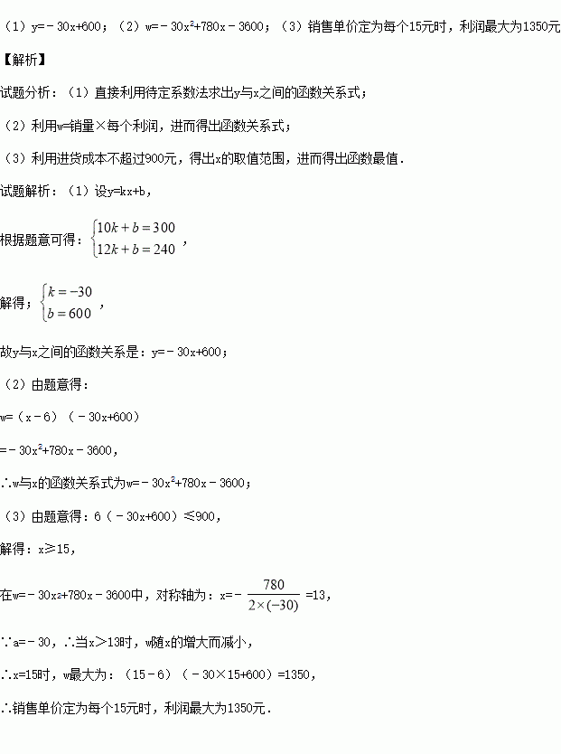 (3)在(2)问的条件下,若许愿瓶的进货成本不超过900元,要想获得最大利润,试确定这种许愿瓶的销售单价,并求出此时的最大利润.