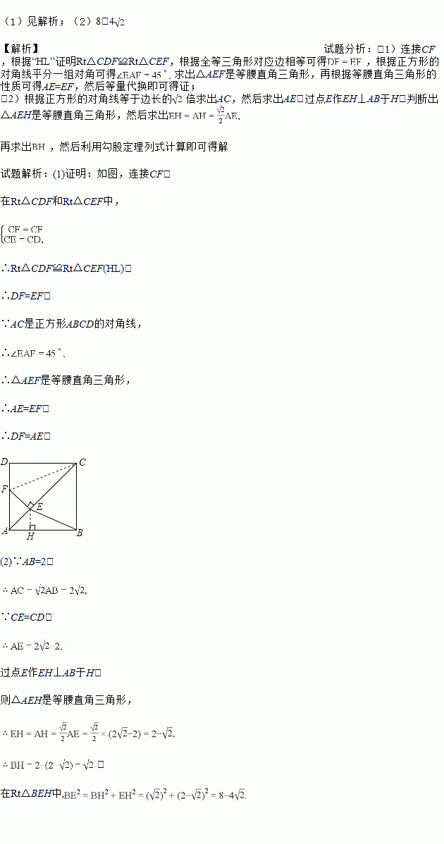 如图,在正方形ABCD中,点E是对角线AC上一点,且CE=CD,过点E作EF⊥AC交AD于点F,连接BE.