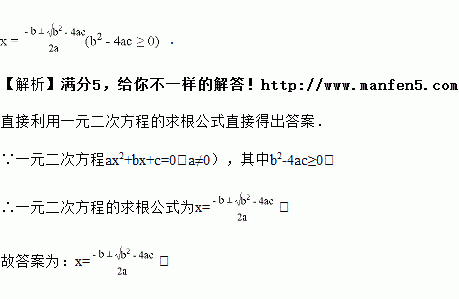 一元二次方程的求根公式是:________.