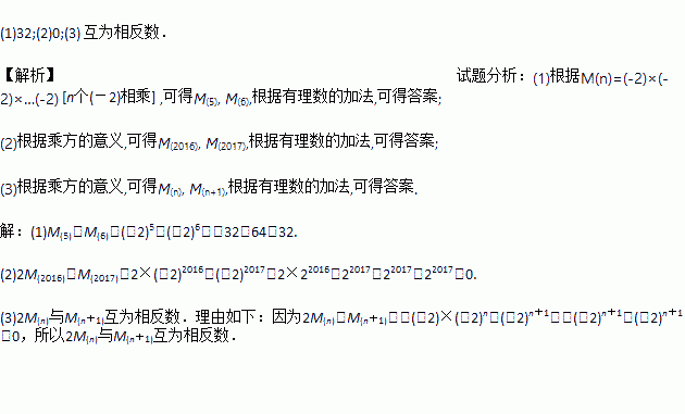 M(n)=(-2)×(-2)×…×(-2), [n个(-2)相乘].