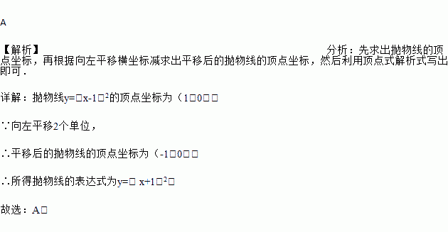 A. y=( x+1)2 B. y=( x﹣3)2 C. y=( x﹣1)2+2 D. y=( x﹣1)2﹣2