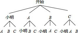 (3)首先根据题意画出树状图,然后由树状图求得所有等可能的结果与获A等级的小明参加比赛的情况,再利用概率公式即可求得答案.