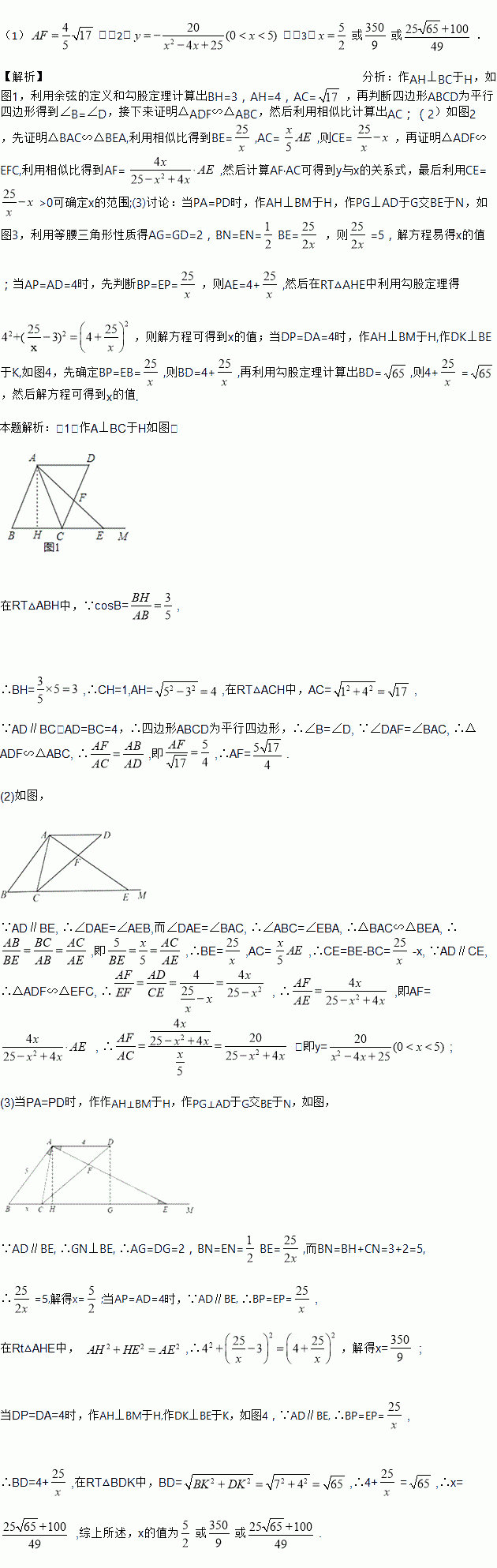 (1)如图1,当x=4时,求AF的长;