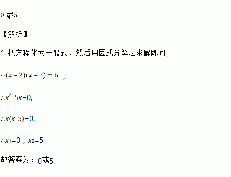 方程(x-2)(x-3)=6的解为____________.