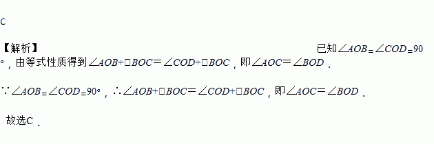 已知:如图所示,∠AOB=∠COD=90°,则( )