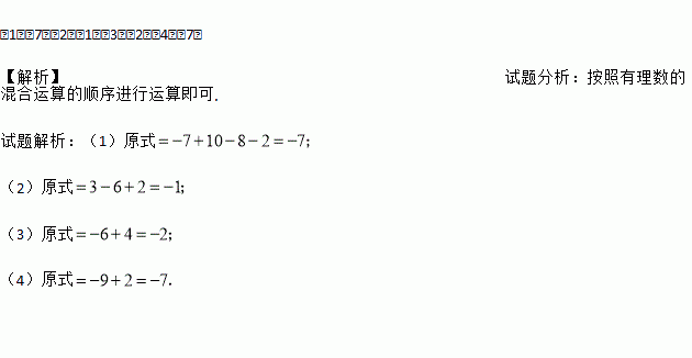 (1)(﹣7)﹣(﹣10)+(﹣8)﹣(+2)