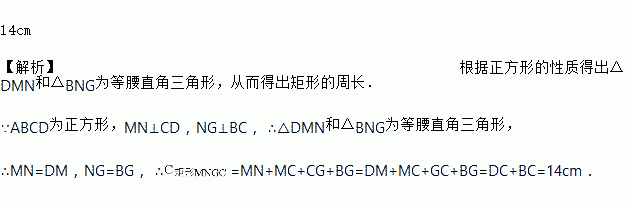如图,正方形ABCD的周长为28 cm,则矩形MNGC的周长是_____.