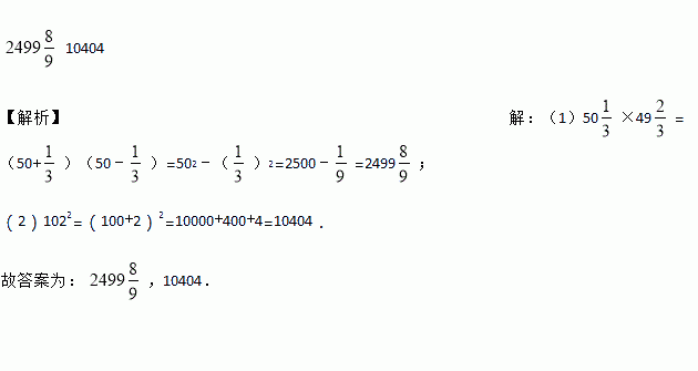 利用完全平方公式直接写出结果:1022 =_____________
