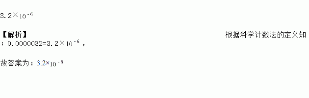数据0.0000032用科学记数法表示为______________.
