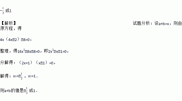 若实数a,b满足(4a+4b)(4a+4b-2)-8=0,则a+b=_____.
