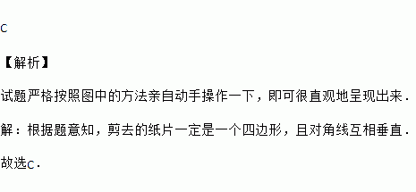 将一圆形纸片对折后再对折,得到下图,然后沿着图中的虚线剪开,得到两部分,其中一部分展开后的平面图形是( )