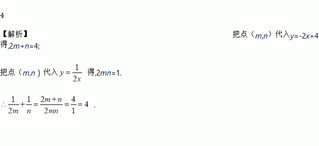 一次函数y=-2x+4与y=交于点(m,n),则=________________.