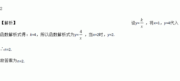 已知y是x的反比例函数,且当x=1时,y=4,当x=2时,y=n,则n=________.
