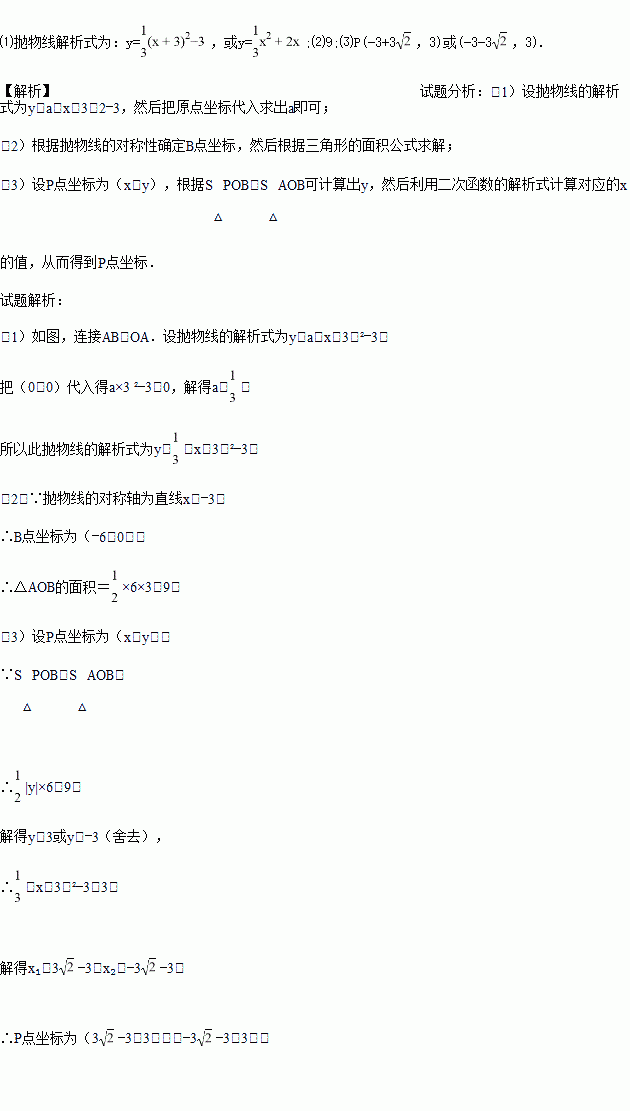 如图,抛物线的顶点为A(-3,-3),此抛物线交x轴于O、 B两点.