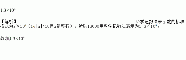 重庆一中学生在第32届重庆市青少年科技创新大赛中再获佳绩,累计26人次获奖,共获奖金13000元.将数13000用科学计数法表示为______.