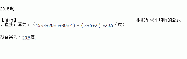 要了解某地农户用电情况,抽查了部分农户在某地一个月中用电情况:用电15度的有3户,用电20度的有5户,用电30度的有2户,那么平均每户用电__________.