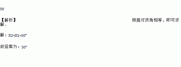 如图,直线AB、CD相交于点O,∠1=50°,则∠2=____度.
