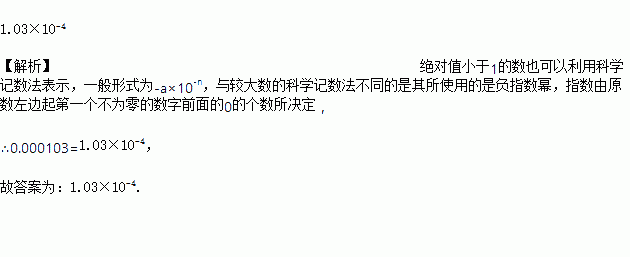 将 0.000103 用科学记数法表示为___________.