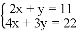 《九章算术》是我国东汉初年编订的一部数学经典著作.在它的“方程”一章里,一次方程组是由算筹布置而成的.《九章算术》中的算筹图是竖排的,为看图方便,我们把它改为横排,如图1、图2.图中各行从左到右列出的算筹数分别表示未知数x,y的系数与相应的常数项.把图1所示的算筹图用我们现在所熟悉的方程组形式表述出来,就是,类似地,图2所示的算筹图我们可以表述为( )