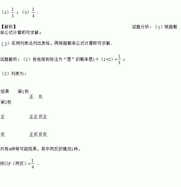 (1)若使用三张完全相同纸条,其中一张标注为“是”,另外两张空白,则爸爸抓到标注为“是”的概率是 .