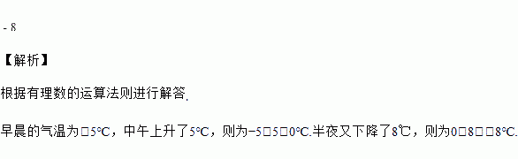 早晨的气温为,中午上升了,半夜又下降了,则半夜的气温是________.