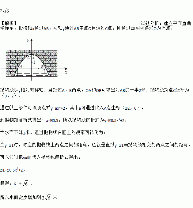 下图是一个横断面为抛物线形状的拱桥,当水面宽4 m时,拱顶(拱桥洞的最高点)离水面2 m,当水面下降1 m时,水面的宽度为_____m.