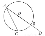 如图,过⊙O上一点C作⊙O的切线,交直径AB的延长线于点D,若∠A=25°,则∠D的度数为( )