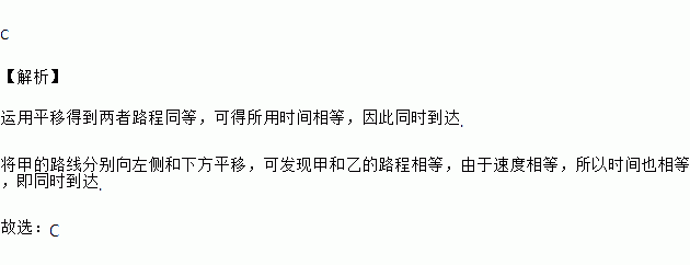 如图,两只蚂蚁以相同的速度沿两条不同的路径,同时从A出发爬到B,则( )