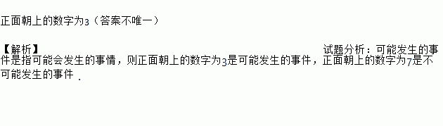 小明在做掷一枚普通的正方体骰子实验,请写出这个实验中一个可能发生的事件:________