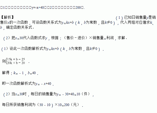 售价x(元) | 15 | 20 | 25 | ?????? |
