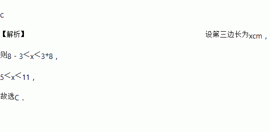 一个三角形的两边长分别为3cm和8cm,则此三角形第三边长可能是( )