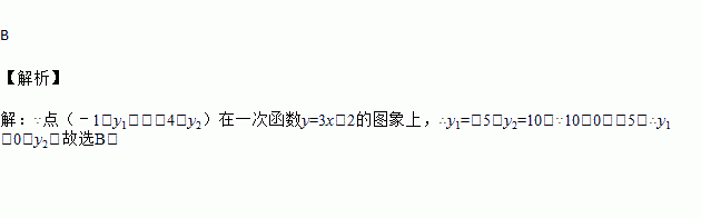已知点(-1,y1),(4,y2)在一次函数y=3x-2的图象上,则y1,y2,0的大小关系是( )