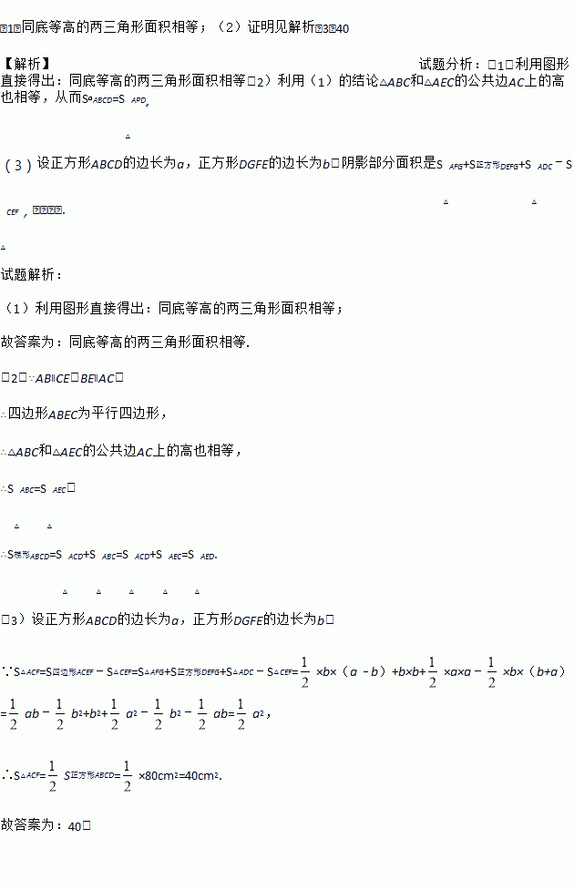如图3,按此方式将大小不同的两个正方形放在一起,连接AF,CF,若大正方形的面积是80cm2,则图中阴影三角形的面积是 cm2.