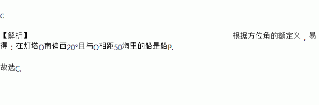 如图,四艘船M,N,P,Q与灯塔O的距离均为50海里,则在灯塔O南偏西20°且与O相距50海里的船是( )