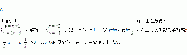 若正比例函数y=kx的图象经过直线y=x+1与y=3x+5的交点,那么y=kx的图象位于( )