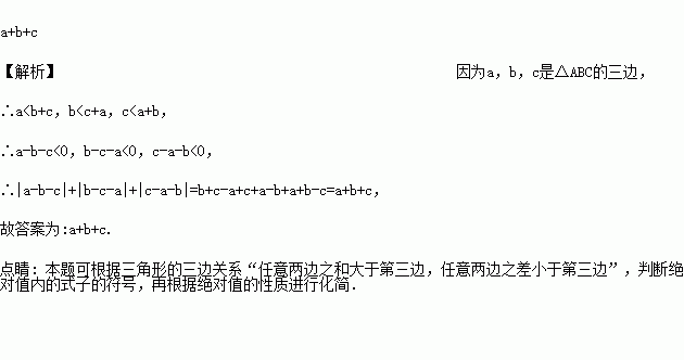 若a,b,c是△ABC的三边长,化简|a-b-c|+|b-c-a|+|c-a-b|=____
