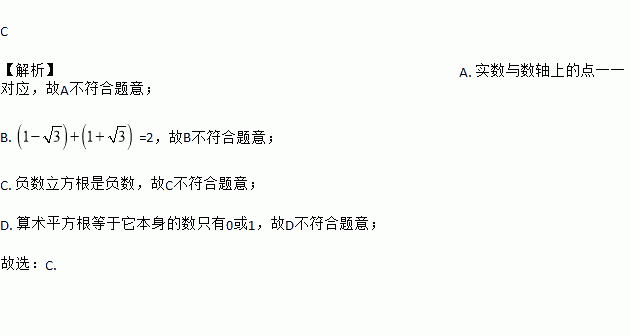 C. 负数没有平方根也没有立方根 D. 算术平方根等于它本身的数只有0或1