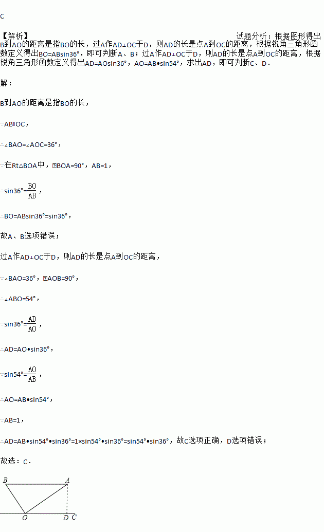 C. 点A到OC的距离为sin36°sin54° D. 点A到OC的距离为cos36°sin54°