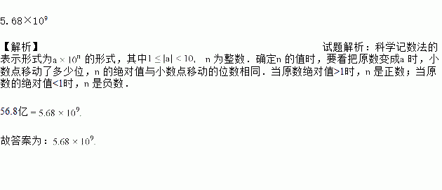 2017年7月27日上映的国产电影《战狼2》,风靡全国。剧中“犯我中华者,虽远必诛”鼓舞人心,彰显了祖国的强大实力与影响力,累计票房56.8亿元。将56.8亿元用科学记数法表示为_________元.