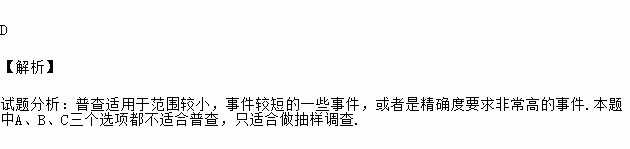下列调查中,最适合采用全面调查(普查)方式的是 ( )