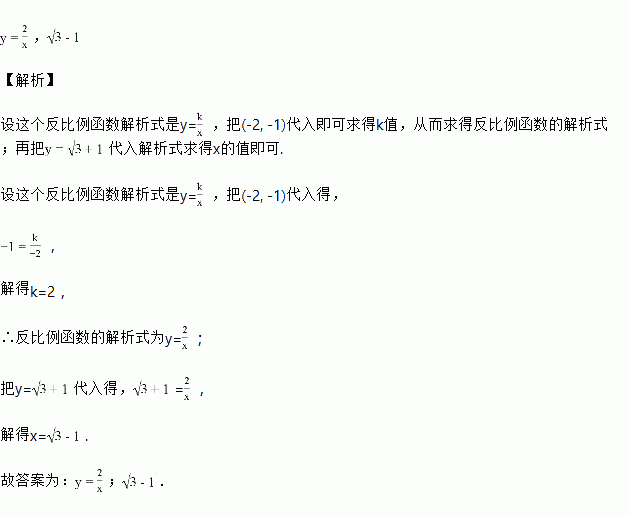 如果反比例函数的图象在第一、三象限,而且第三象限的一支经过点,则反比例函数的解析式是________.当时,________.