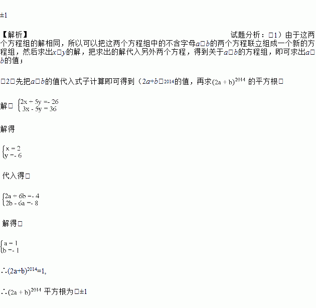 已知关于x、y的方程组 和方程组 的解相同,求的平方根.