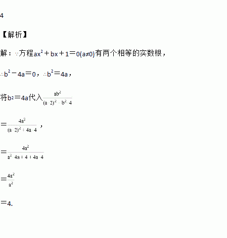 已知关于x的一元二次方程ax2+bx+1=0(a≠0)有两个相等的实数根,求的值.